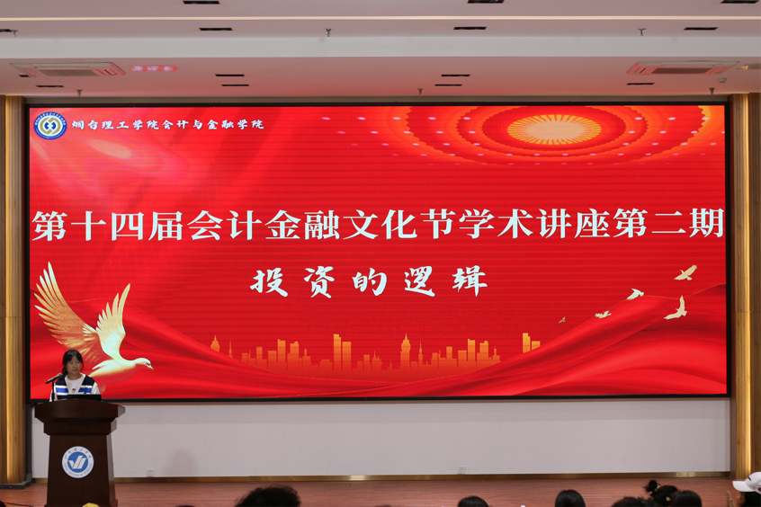 10月11日,会计与金融学院在综合楼六楼报告厅举办“学术讲堂”第二期《投资的逻辑》专题讲座。本次讲座邀请到中金财富证券山东管理总部的产品顾问吴愫恒主讲,会计与金融学院团总支负责人曹春蕾主持。