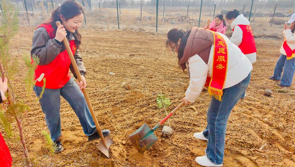 春风催新绿,植树正当时。3月8日,健康学院“健康卫士”志愿服务队奔赴九开生态园,开展植树节植树活动。