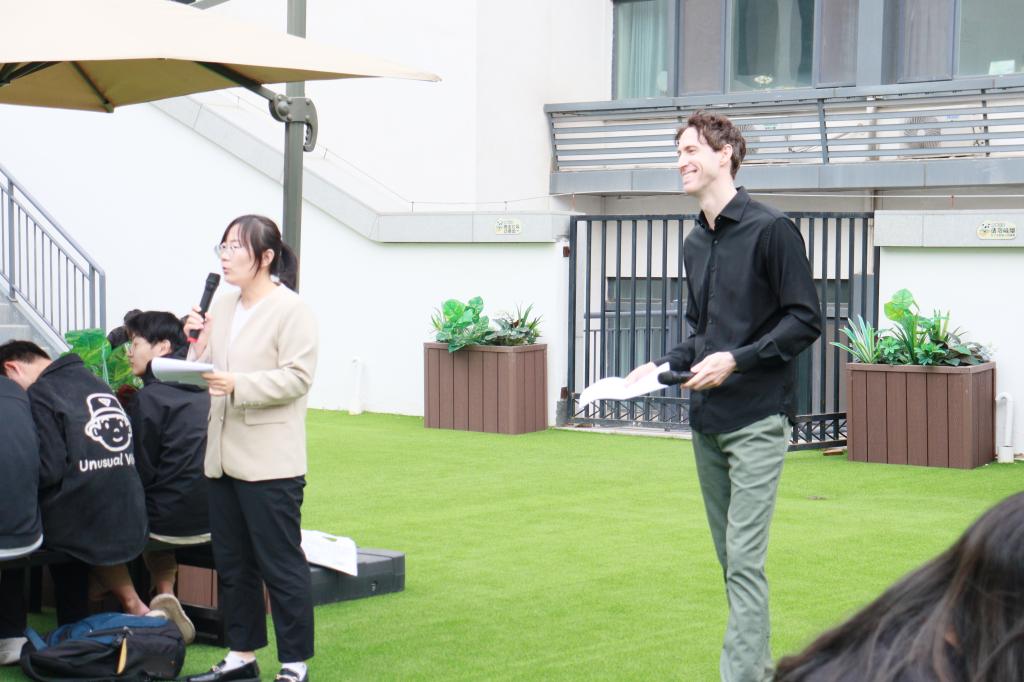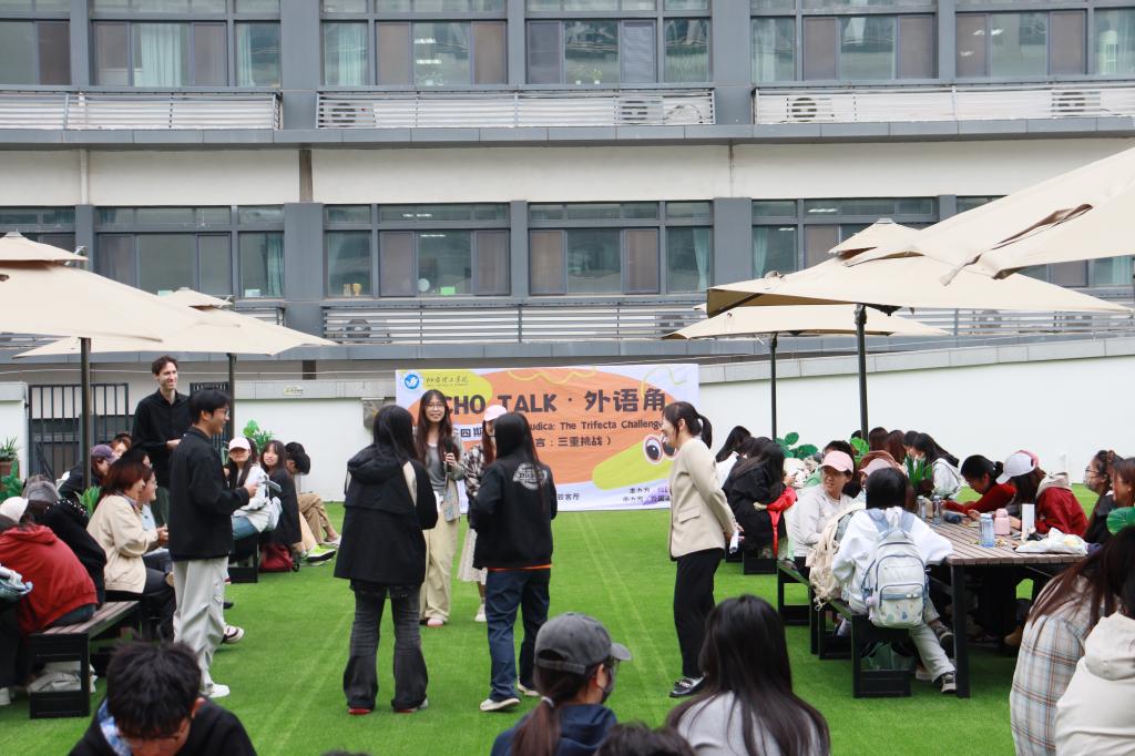 语言是文化的桥梁,英语不仅是一种交流工具,更是一扇通往世界多元文化的窗口。5月23日,由校团委主办,外国语学院承办的第四期外语角活动于综合楼天台云客厅成功举办。本次活动特邀Daniel和程美丽担任主讲老师,以“Lingua Ludica: The Trifecta Challenge”为主题,通过趣味游戏激发同学们英语学习热情,现场欢笑不断,气氛热烈。