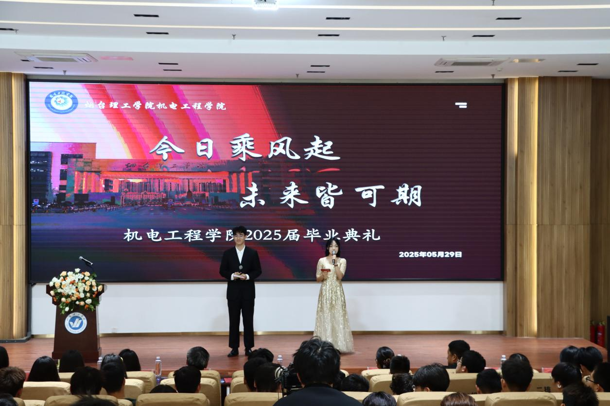 今日辞旧程,明朝绘新章。5月29日,机电工程学院于综合楼六楼报告厅举办2025届毕业特辑活动。校长助理李洁,机电工程学院院长刘加光,党总支副书记王晓黎、常务副院长刘安琴、全体辅导员、毕业生班主任及机电工程学院师生代表。