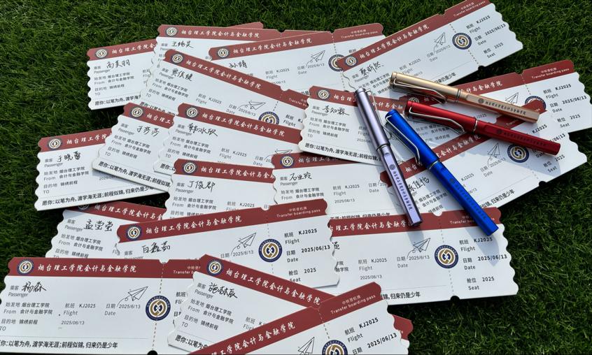 笔端承学脉,新程启求知。学院精心准备两份满载深意的纪念礼物,以具象化的载体传递对毕业生的殷切期许。笔身镌刻会计与金融学院院名、院徽及毕业年份的定制笔,愿毕业生们告别校园后,仍以笔为求知之舟,在行业的知识海洋中不断奋力划桨。定制登机牌将校园时光与未来征途联系在一起,象征学院永远是学子逐梦的“始发站”,盼他们乘青春风,奔赴广阔新途。