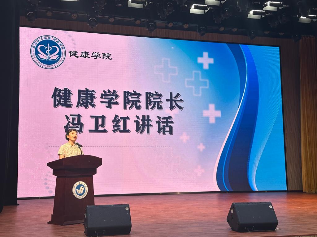 9月14日晚,健康学院2025级新生见面会在综合楼一楼报告厅举行。健康学院名誉院长张培功、院长冯卫红、党总支书记刘大华、副院长李雪与全体教师以及2025级全体新生参加。