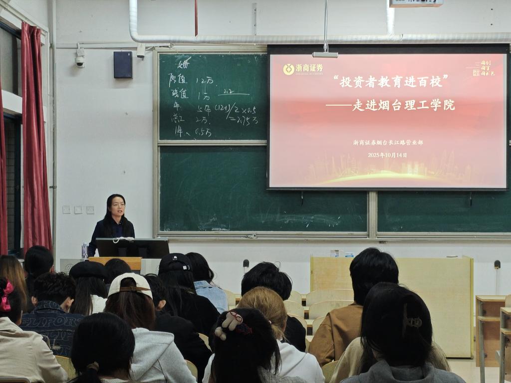 为进一步拓宽学生金融视野,深化对证券投资知识的理解,10月14日,会计与金融学院于一教316开展 “企业家进课堂” 活动。此次活动特邀浙商证券烟台长江路营业部财务顾问经理赵彩虹,为同学们带来一场兼具专业性与实用性的证券投资知识分享会,助力同学们解锁金融投资新认知。
